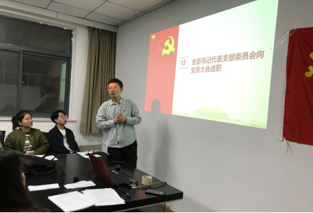 接着,他代表支部委员会成员对本支部2020年度的工作内容进行了总结汇报。支部党员发展工作由书记负责,其他支委协助工作。