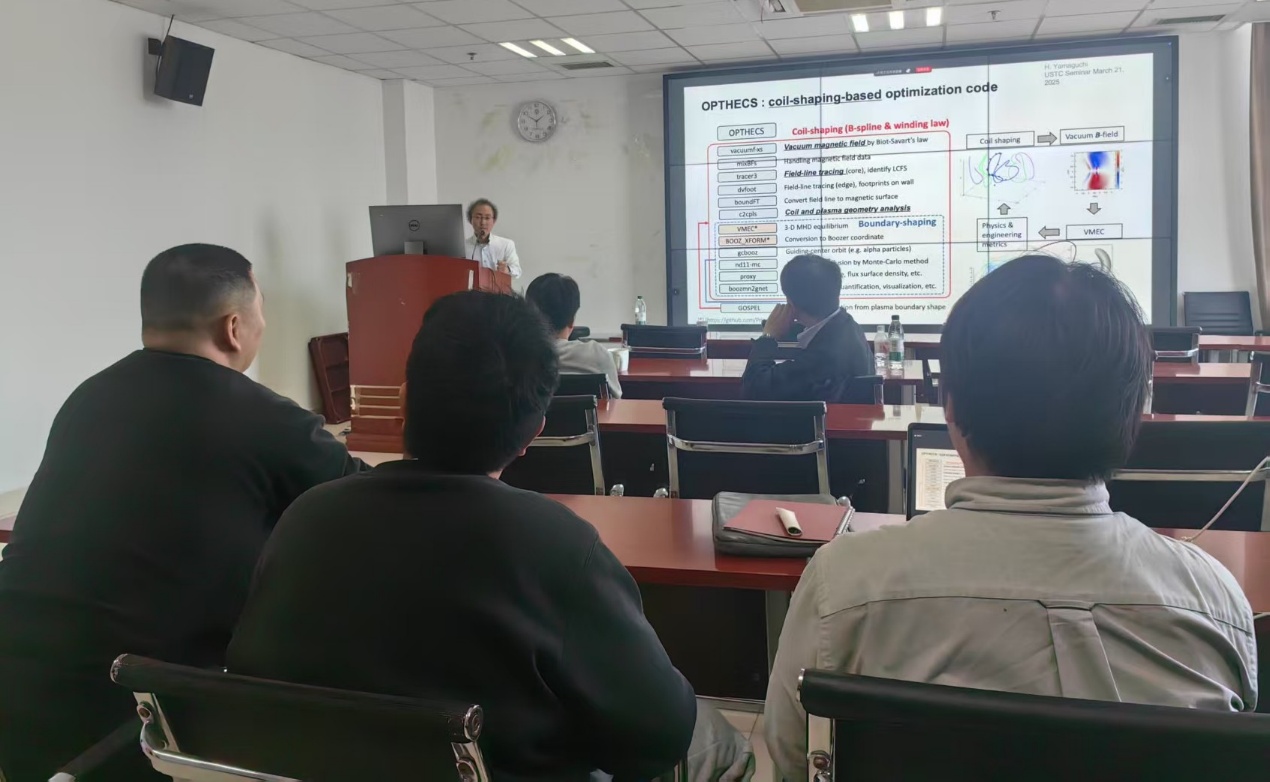 3月21日,核科学技术学院在西区科技实验楼1617会议室举办第八十三期专题讲座,特邀日本国立核融合科学研究所(National Institute for Fusion Science,NIFS)Hiroyuki Yamaguchi副教授和Akihiro Shimizu助理教授,作题为"Design activity of QA/QI flexible stellarator at NIFS"和"Physics/engineering design“ and "construction of quasi-axisymmetric stellarator CFOS-T"的报告,报告会由等离子体物理与聚变工程系祝曹祥特任教授主持。