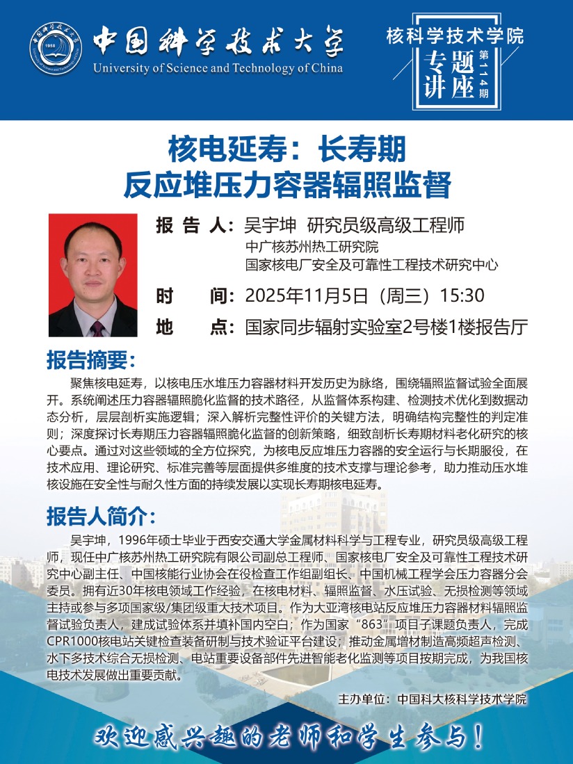 2025年11月5日(周三)15:30 核科学技术学院专题讲座第114期
