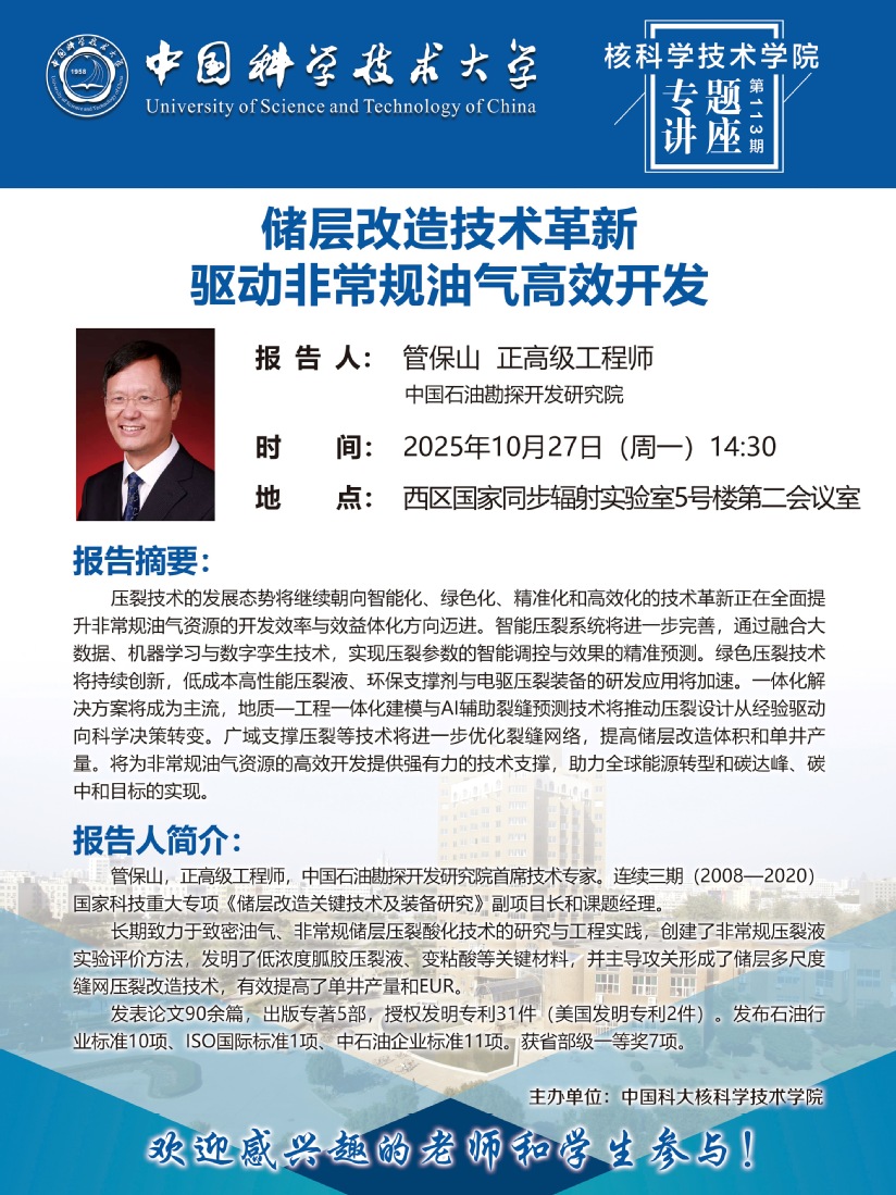 2025年10月27日(周一)14:30 核科学技术学院专题讲座第113期