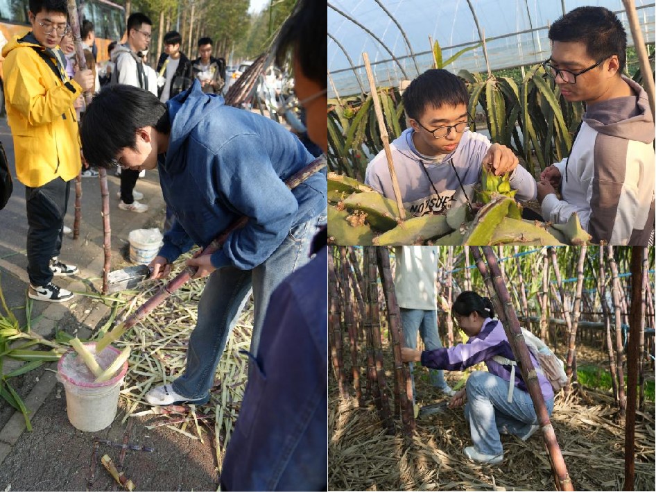 本次活动将团日活动阵地延伸至田野,打破传统形式,打造了一堂生动的劳动实践课。在农户的讲解与示范下,同学们系统学习了甘蔗、火龙果等作物的采摘技巧。大家亲手实践,从生疏到熟练,在泥土与汗水中体会“一粥一饭,当思来之不易”的深刻内涵。