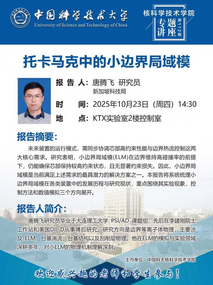 2025年10月23日(周四)14:30 核科学技术学院专题讲座第112期