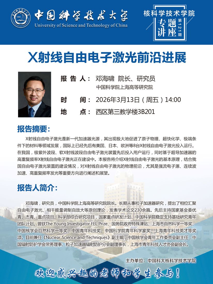 2026年3月13日(周五)14:00 核科学技术学院专题讲座第121期