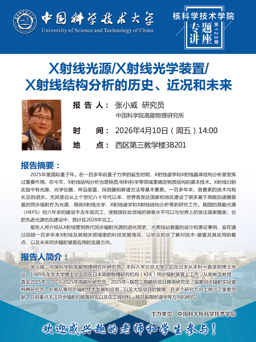 2026年4月10日(周五)14:00 核科学技术学院专题讲座第123期